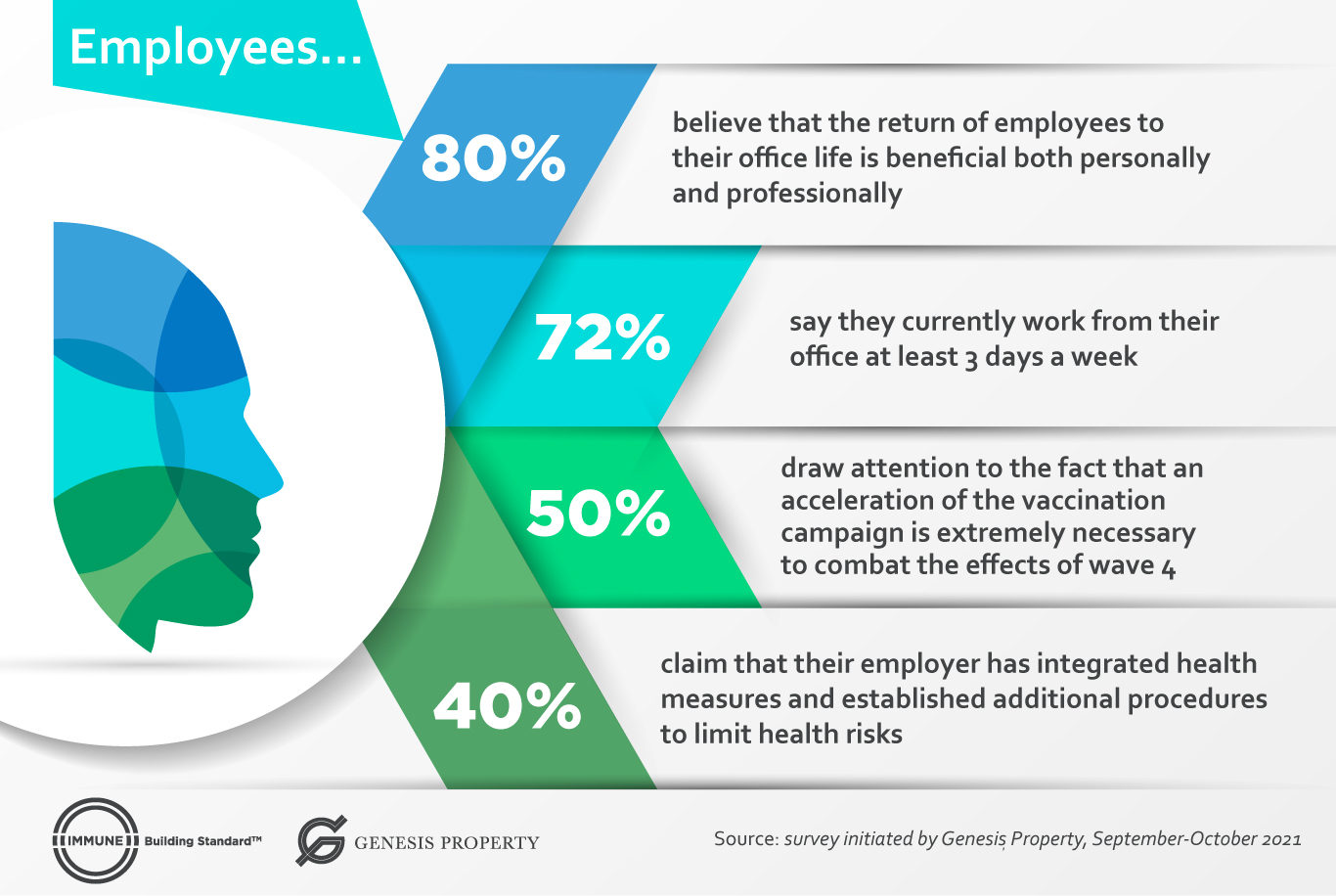 „Preparing the return to office is an ongoing process as economic activity has increased this year. Recruitment trends show that employers are expanding their teams as business grows and returns to pre-pandemic levels, and many companies have taken steps over the past year and a half to limit health risks in the office. On the other hand, however, we are all witnessing the effects of the fourth wave of the pandemic, so we believe, together with employees in Romania, that it is absolutely necessary to see an acceleration of the vaccination campaign and more measures implemented to mitigate the spread of the virus”, says Ștefan Tudos, Vice President of Genesis Property, responsible for managing the client portfolio.