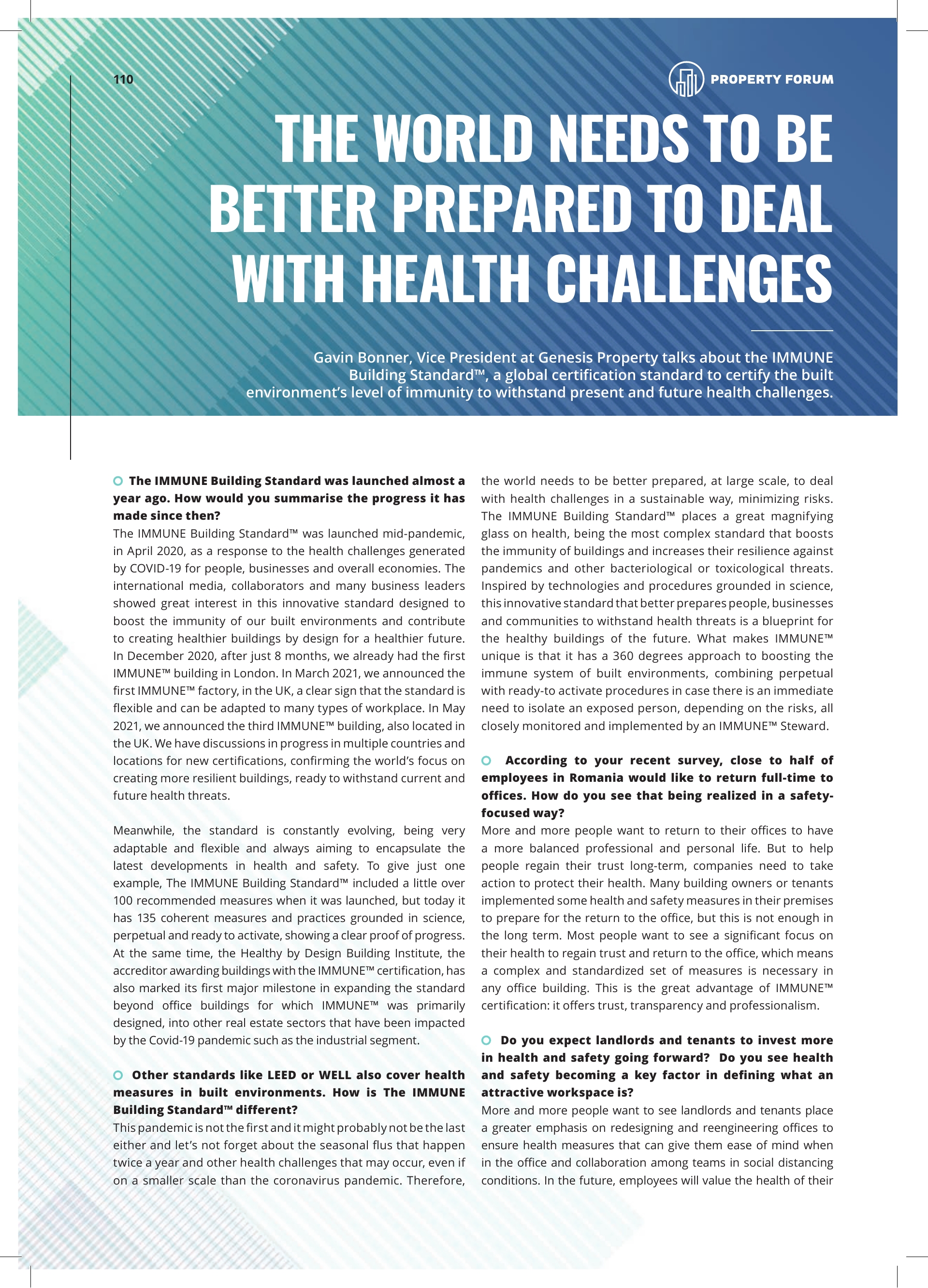 The IMMUNE Building Standard™ is featured at pages 110 & 111 in the interview with Gavin Bonner.